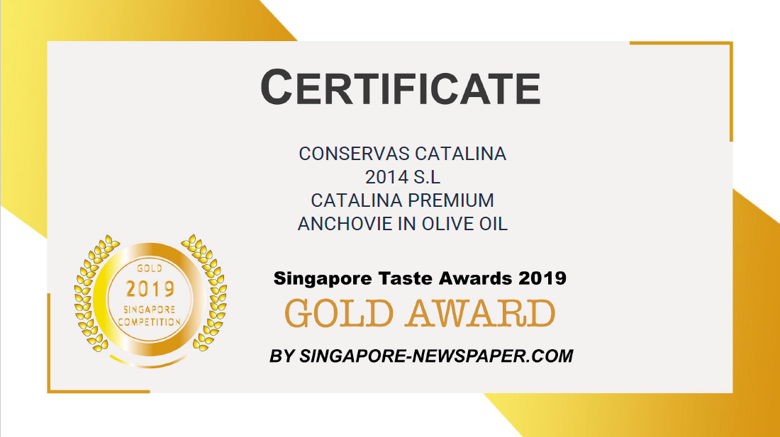 Santoña 1 de abril- Las anchoas en aceite de oliva de Conservas Catalina han obtenido la medalla de Oro en los Singapore Taste Awards 2019, unos premios que dan acceso al mercado asiático de la distribución facilitando el contacto con 4.683 distribuidores, 160 países, 1.328 importadores y 1.248 periodistas internacionales. En la cata, que se ha celebrado en París, también ha sido galardonado su bonito en aceite de oliva con la medalla de Plata.