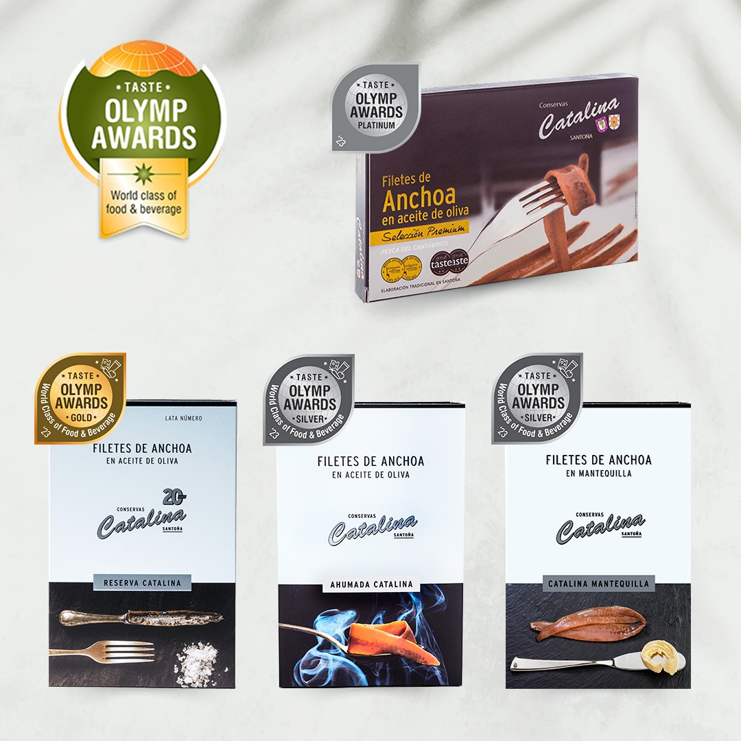 Conservas Catalina acaba de hacerse con los máximos galardones en la categoría de anchoa en los premios griegos de alimentación OlympAwards. En concreto las anchoas Premium han obtenido el premio más alto: platino; la gama Reserva, oro y las de gama mantequilla y ahumada, plata.