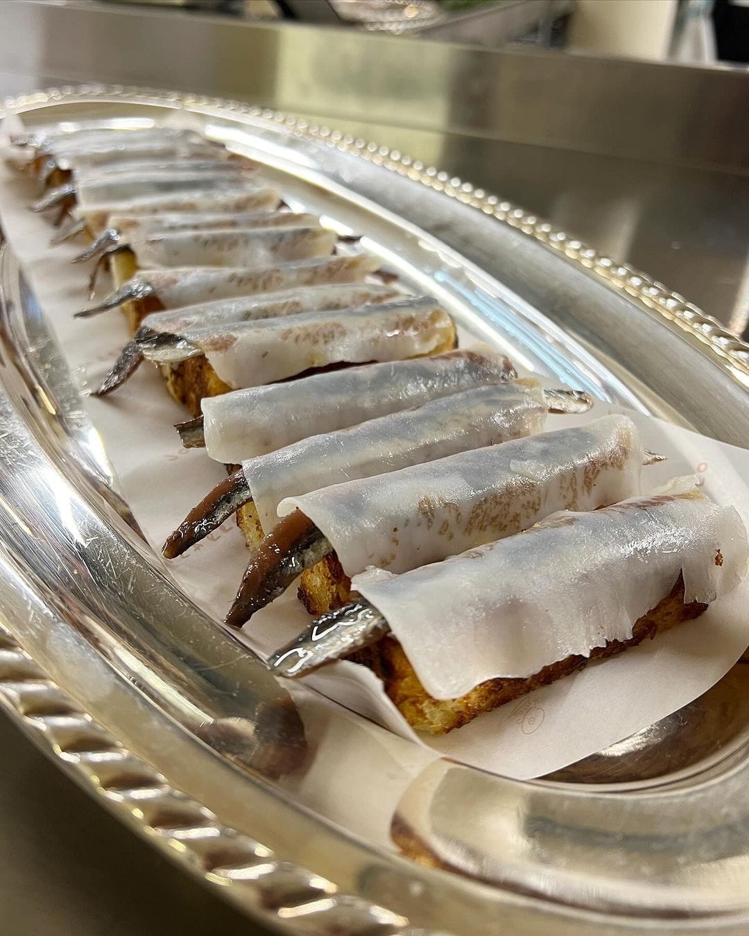 En la mesa nuestras anchoas de Santoña Reserva Catalina, el jamón ibérico Cinco Jotas y el pan con tomate, la ensaladilla y las croquetas, entre otras.