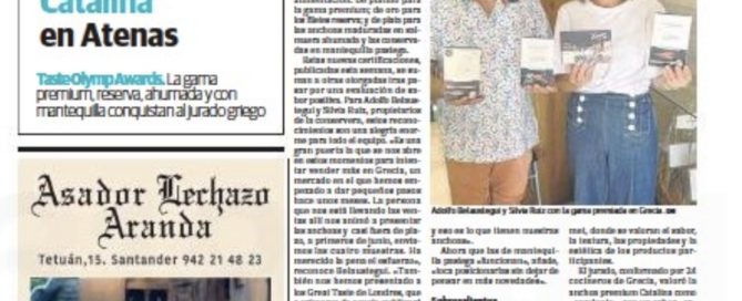 Platino y oro para las anchoas de Conservas Catalina en los premios de gastronomía más importantes de Grecia: los Olymp Awards